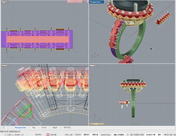 거대하고 아름다운 에메랄드 오벌형태를 더욱 빛내주는 화려한 디자인에 많은 사람들이 좋아하는 헤일로 링! 여러분을 헤일로 링 좋아하시나요? 오늘은 이 헤일로 링을 라이노를 사용해 3D 모델링 하는 방법을 알아볼게요! 헤일로 부분을 먼저 만들어볼게요 '스윕 2레일'을 사용해서 서피스를 먼저 만들어주세요! 서피스를 만들었으면 두께를 주어야겠죠? 이때 '서피스 돌출' 혹은 '서피스 간격 띄우기'를 활용해 주면 됩니다! 반지와 난발까지 만들었더니 어떤가요? 전체적인 형태가 잡혔으니 이제 본격적으로 스톤 세팅까지 들어갈 차례! 라이노캐드 모델링을 통해 3D 출력까지~ 한방에 깔끔하게 가는거야~~!! 형....... <img src="https://blogthumb.pstatic.net/MjAyNjAzMTFfMjYy/MDAxNzczMjAwNzgzMzIy.K-GfG1JRJTb5LdKI8sBuBBl8UavlDFl0JaNUCz0hvm4g.Eo99GaBSXgQ9M8gcuFeaGXiN1jFVe0S_zT9fczI8Lg4g.PNG/image.png?type=s3" />