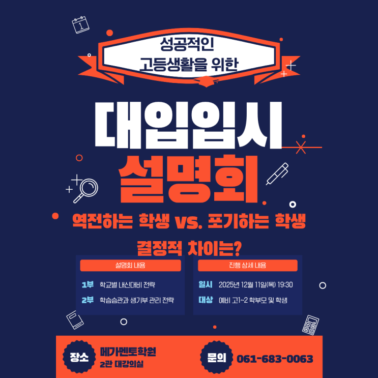2025년 예비 고1~2 대입 설명회 "내신&생기부 심폐소생술 하는 법 알려드려요." [메가멘토학원 - 여수 여천 영어 수학 학원]