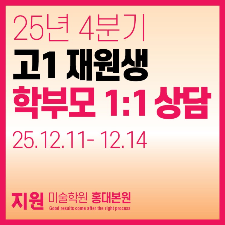 홍대 입시미술학원, 현 고1 재원생 학부모 1:1 개별상담 진행 예정 안내!