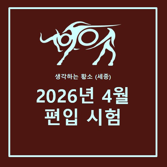 ▶모바일 버전은 표를 옆으로 스크롤 해주시기 바랍니다. *재원생은 응시 불가* ▶ 초등 과정 <실력/심화 4-2과정> *테스트일시: 4월 17일 금요일 5시 예약마감: 4월 16일 목요일 9시 ※ 실력/심화 시험지는 동일하고 커트라인에 따라 반이 배정됩니다. ▶ 필독 사항 ▶ 시험 안내 및 신청 방법 ● 시험 문항수: 40문항 (문항당2.5점) ● 시험 소요시간: 1시간 50분 ● 테스트 예약 방법 : 이름, 학교, 학년, 응시과정, 날짜 (예시: 이름 /학교 /o학년 /oo과정 /o월 o일 o시 ) ● 시험 신청: 문자 수신 전용 010-4340-3707 로 양식에 따라 접수 부탁드립니다. ● 카카오톡 플러스 채널: "생각하는 황소 세종" 검색 아래 링크를 클....... <img src="https://blogthumb.pstatic.net/MjAyNjAzMDlfMTI5/MDAxNzczMDM4MTkzMTk0.os3wiPDlFwL2TF8ERNRA4hWu-RE3bdJTOpZkuRl88hQg.PZq0vfXTgg2utzbYOvyhKJndM6Vho3X6evne9vGXXMIg.JPEG/26.4%BF%F9_%C6%ED%C0%D4.jpg?type=s3" />