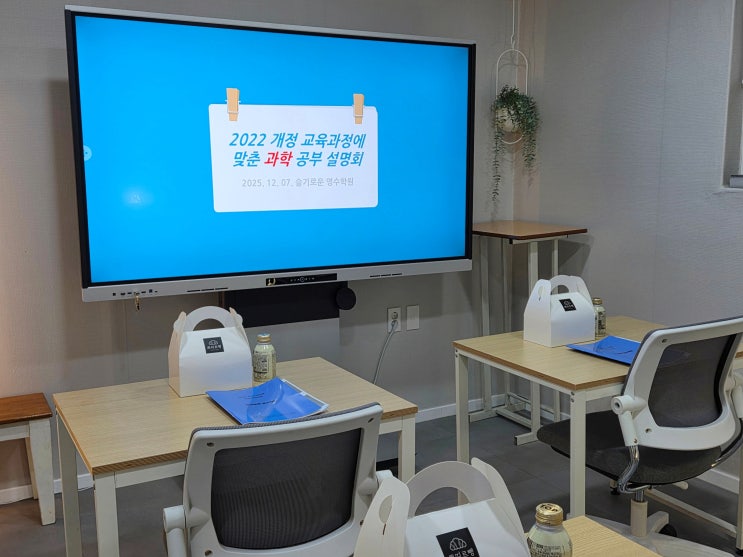 안녕하세요, 슬기로운 영수학원 입니다. 지난 7일에는 2022 개정 맞춤 과학 공부에 대한 설명회가 열렸는데요. 어떠한 내용으로 진행되었는지 학부모님들께 공유 드립니다 ^^ 2022 개정이 도입되면서 과학 공부의 중요성이 아무래도 점점 더 커졌는데요. 변화화는 내용은 어떤 것들이 있는지 그에 따라서 공부는 어떻게 해야되는지 학부모님들께 자세히 안내드리고자 과학 설명회 자리를 마련했답니다. 둔산동뿐만 아니라 멀리서 오시는 학부모님들도 계신 것을 파악해서 입시에 대한 내용을 먼저 안내드렸어요. 고교학점제, 2022 개정교육과정, 대학 입시제도, 학생부종합전형 및 준비과정 등의 내용을 구성해서 초등학생 학부모님들도 쉽게 이....... <img src="https://blogthumb.pstatic.net/MjAyNTEyMTJfMTAy/MDAxNzY1NTM0MzYyNTQx.x91v5qKTe7hzc8s4HwSjP-vQwQyzEYZLFK1neQDvnhYg.vncxzhRckJ2IHjJA7Llhl2MrkVjt_rsqh8bEG8qmzXgg.JPEG/KakaoTalk_20251211_115644594.jpg?type=s3" />