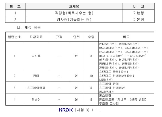 안녕하세요 이현꽃예술학원입니다 :) 화훼장식기능사 실기 준비물 안내드려요 꼼꼼히 확인하시고 빠짐없이 잘 준비해 가시길 바랍니다! * 전체 준비물 * (1~3과제 포함) * 1과제 준비물 * (핸드타이드) * 2과제 준비물 * (서양꽃꽂이) * 3과제 준비물 * (동양꽃꽂이) 시험 일정 확인 및 접수는 큐넷에서 가능합니다. <img src="https://blogthumb.pstatic.net/MjAyNTExMjRfMzEg/MDAxNzYzOTY4MDU3Mzk2.m9iXc5FHvvsNlurXUWHbLRmWO1K4ZfSZ4h-ay0caEZgg.-csGTNZuIelk95X16zYWoA2_Qb5xruxfbP368qUAydcg.JPEG/3%B0%FA%C1%A6.jpg?type=s3" />