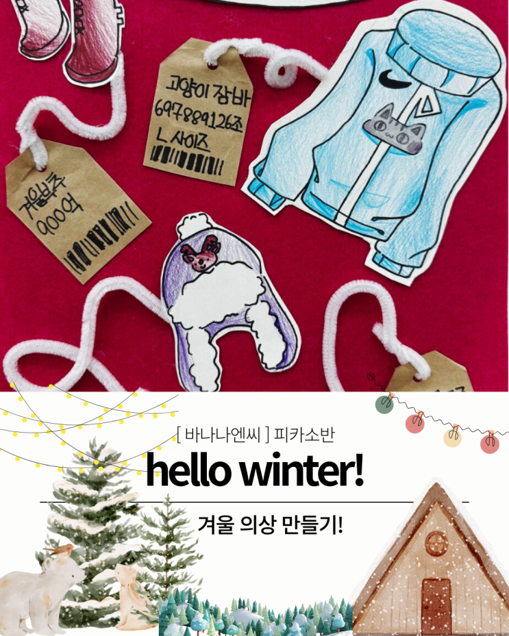 안녕하세요~ 초등전문 미술학원! 군포 산본 미술학원! 산본 바나나엔씨 피카소반 수현T입니다 겨울이 되었다는 티를 내듯 눈 소식이 들려오고 있는데요! 우리 피카소반 친구들과 함께 추운 겨울과 반갑게 인사하는 느낌으로 겨울의상을 그려보는 시간을 가졌습니다❄️☃️ 겨울의상의 가장 큰 특징은 무엇이 있을까요? 바로 추운 날씨로부터 우리의 몸을 따뜻하게 감싸주는 포근함과 폭신폭신함인데요~ 그 폭신하고 포근한 느낌을 위해 털실로 뜨개질을 해 만든 스웨터는 필수로 꼭! 그려보도록 했고 털모자, 장갑, 목도리, 귀마개 등 악세사리는 원하는 것을 골라 추가적으로 그려주었습니다. 또 뾰족한 각이 있는 것보다는 둥글게 다듬어....... <img src="https://blogthumb.pstatic.net/MjAyNTEyMDZfNjEg/MDAxNzY0OTk4MDgxODQ5.CJpcGXoU1OJy6HvnZQmOk-j21VvMxj-pSfYcmO65nEIg.5CyUmsx2Rol8wfYYVdtG-MhSZxhvRkiz43bo_ZuG5-8g.PNG/%B0%CB%C1%A4%BB%F6_%BD%C9%C7%C3%C7%D1_%C1%A6%C1%D6%B5%B5_%BF%A9%C7%E0_%C3%DF%C3%B5_%C0%CE%BD%BA%C5%B8%B1%D7%B7%A5_%B0%D4%BD%C3%B9%B0.png?type=s3" />