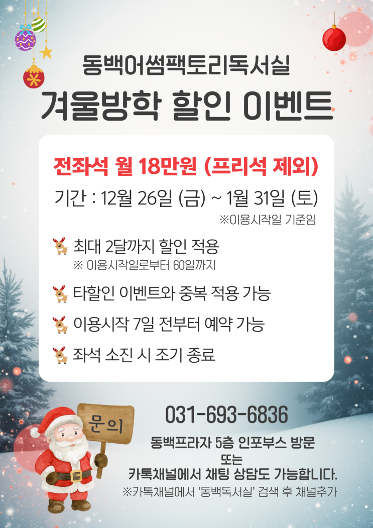 집중이 잘되는 동백 독서실! 겨울방학 할인 이벤트!
