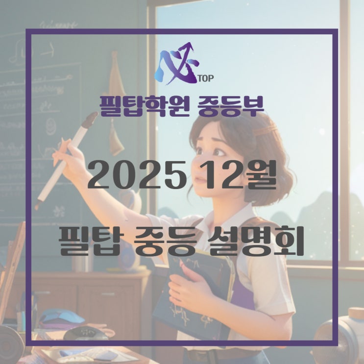 안녕하세요! 기흥구 구갈동 21년 터줏대감 필탑학원입니다. 오늘은 12월에 마련된 필탑 중등 설명회에 대한 이야기입니다. 기흥구 구갈동 영수학원 필탑은 21년 동안 한결같은 모습으로 최고의 강의와 시스템을 제공해왔습니다. 12월 11일 목요일 오후 8시에는 기흥구 구갈동 중등 최강인 필탑 중등부가 어떤 강사진과 어떤 시스템으로 학습하는지 아실 수 있는 최고의 기회입니다. 특별히 올해는 예비 중1을 대상으로 한 이음수학과 이음영어를 개강하여 이제는 중등을 넘어서서 중등을 준비하는 초등학생들까지 기흥구 구갈동 최고의 수업을 경험할 수 있게 되었습니다. 25년 7월에 첫 개강한 기흥구 구갈동 이음수학과 이음영어는 2026년 1월....... <img src="https://blogthumb.pstatic.net/MjAyNTEyMDVfNTEg/MDAxNzY0OTI0NTkwNjAw.CYx5DtoRfgWpjB7wfbWcVH78NOyeCczVF0PSue-8Seog.qdCw0mH2t11CYtOMZ2eC3ONAalLFl9yVXwfI4SRtuk0g.JPEG/%BA%B9%BB%E7%BA%BB_%C7%CA%C5%BE_%C1%DF%B5%EE%BA%ED%B7%CE%B1%D7_%C7%A5%C1%F6.jpg?type=s3" />