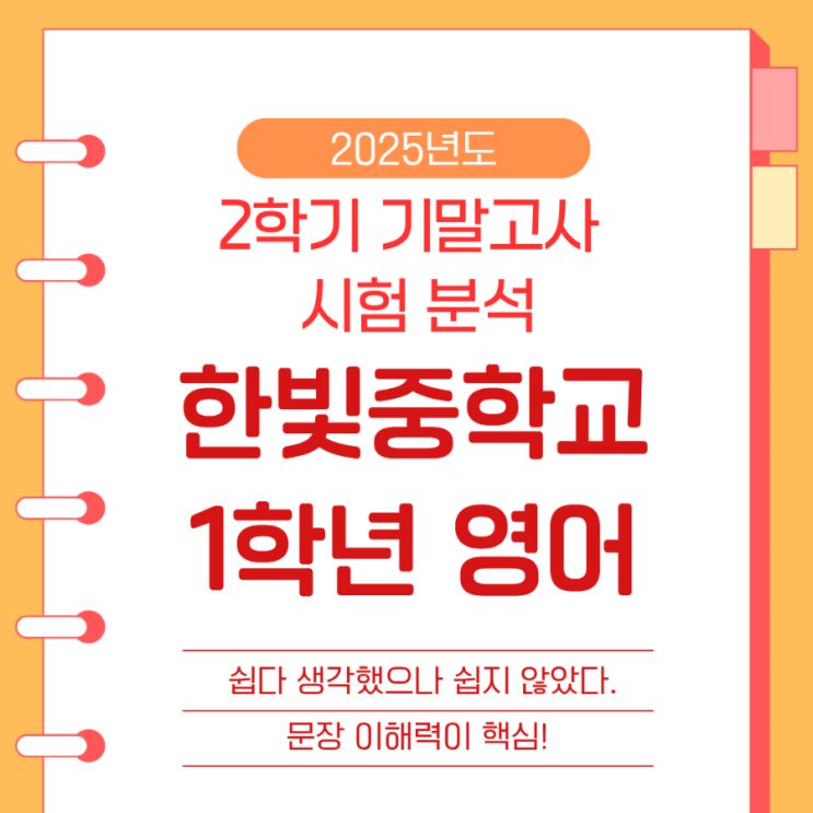 [동천동 영어 수학 학원]25년도 2학기 기말고사_한빛중학교 1학년 영어_쉬운 듯 쉽지 않았다, 문장 이해력이 핵심!
