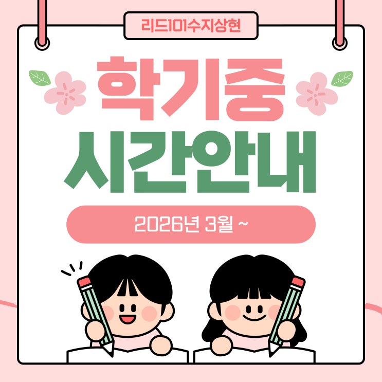리드101 수지상현점 새학기 수업시간 안내 (2026년 3월~)