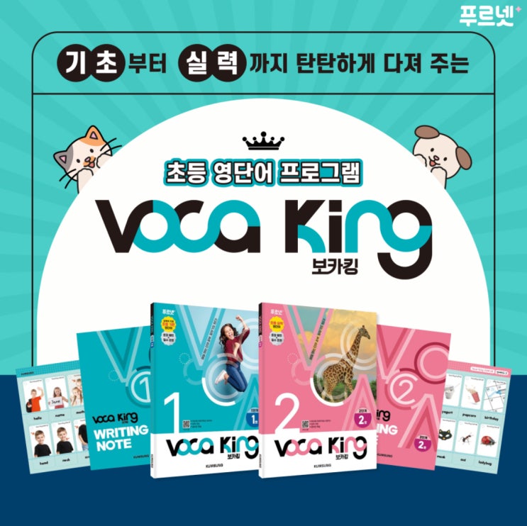안녕하세요, 푸르넷 최강학원입니다. 우리아이 영어 기초부터 실력까지 탄탄하게 다져주는 초등 영단어 프로그램 '푸르넷 보카킹(Voca King)'이 신규 출시되었습니다! '푸르넷 보카킹'은 초등학생 아이들이 매일 단어 학습을 통해 자연스럽게 영어문장을 구사할 수 있도록 영어 어휘력과 자신감을 높이는 데 초점을 맞춘 교재인데요. 지금부터, '푸르넷 보카킹'에 대해 자세히 알려 드릴게요 '푸르넷 보카킹' 구성 및 대상 대상: 초등학생 학습 과정: 총 2단계, 각 12개월(총 24개월) 왜 '푸르넷 보카킹'인가요? '푸르넷 보카킹'은 매일 단어 공부하는 습관을 잡아 주고, ....... <img src="https://blogthumb.pstatic.net/MjAyNTEyMDNfMTMw/MDAxNzY0NzU4MDc5OTk3.3PEP5hlhPKORMO28DpAKdqiyVGnZPTkLHERMMZqRt60g.H31pZ9cswAbl8xpVuU5rB2j0LBENKNZrbT79lt25gS8g.JPEG/KakaoTalk_20251203_192531809.jpg?type=s3" />