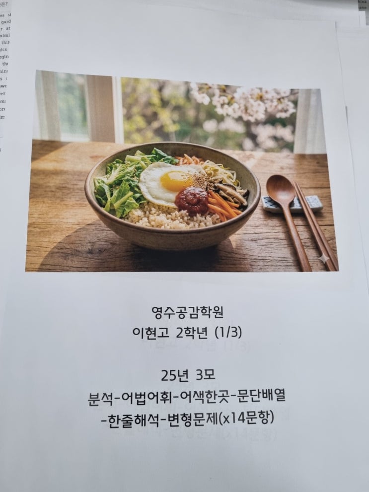 이현고 영어 내신, 서술형 없다고 방심 금물! (외부지문 대비 전략) 안녕하세요, 이천 지역에서 17년 동안 학생들과 함께해 온 영수공감학원입니다. 이현고 영어 시험을 준비하는 학생들은 흔히 이렇게 말합니다. "서술형 없으니까 영어는 좀 할만하지 않나요?" 하지만 막상 시험이 끝나면 이야기가 달라집니다. "지문이 너무 어려웠어요", "처음 보는 글이라 해석이 안 됐어요"라는 탄식이 터져 나옵니다. 이현고 영어의 진짜 복병: '외부지문' 이현고 영어는 객관식 100%입니다. 겉보기엔 쉬워 보이지만, 실제로는 태어나서 처음 보는 외부지문이 대거 등장합니다. 단순 암기나 교과서 위주의 공부만....... <img src="https://blogthumb.pstatic.net/MjAyNjAzMDlfMTYz/MDAxNzczMDM3NTMxMTg0.FxgL_ucW2Z1C6A0VGnX7fELwarag5YSODyBhj4gOH4og.zMzPE9_2vNxj2I3-2-eKuTtoLRRcNAxeE04_Qi5jvgQg.JPEG/KakaoTalk_20260309_152454604.jpg?type=s3" />
