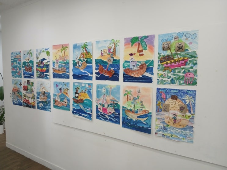 안녕하세요 그리다미술학원입니다 ^^ 이번 주 그리다미술학원에서는 아이들이 상상력을 한껏 펼칠 수 있는 ‘후크선장의 해적선’을 주제로 수업을 진행했어요. ⚓ 창의력 가득! 나만의 해적선 돛 디자인 해적선 하면 빠질 수 없는 상징, 돛! 아이들은 기본 돛 모양을 바탕으로 각자만의 문양과 색을 더해 개성 넘치는 해적 깃발을 완성했어요. 어떤 친구는 좋아하는 캐릭터를, 또 어떤 친구는 해골을 그려 개성있는 돛을 그렸어요. 종이를 찢어 만드는 바다의 결 바다는 물감을 칠한 뒤 충분히 말려 “찢기 기법”으로 표현했어요. 물결을 따라 종이가 갈라질 때 생기는 자연스러운 결이 정말 멋진 파도로 변했죠. 잔잔한 바다부터 거친 파....... <img src="https://blogthumb.pstatic.net/MjAyNTEyMDNfMjA2/MDAxNzY0NzM3MDM4Nzg4.VmbknMEeeTtjOl2DhPOhEadHUoL68UhTksjuTY1SAEog.OtFSNeXiVXc9aGUSBqNNEe2hTF1yUBROxOmD_RM2nW4g.JPEG/900%A3%DF20251201%A3%DF125252.jpg?type=s3" />