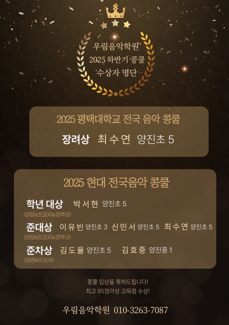 ⭐️우림음악학원 2025년 하반기 콩쿨 수상자⭐️