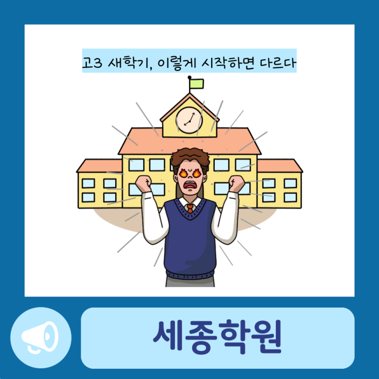 3월. 교실 문을 열고 들어가는 순간부터 느껴지는 묘한 긴장감. 이제는 진짜 “고3”이라는 사실이 실감 나는 시기입니다. 누군가는 벌써부터 불안하고, 누군가는 아직 실감이 나지 않고, 누군가는 “이번엔 진짜 열심히 해야지” 다짐하고 있을 거예요. 오늘은 고3 새학기를 시작하는 마음가짐에 대해 정리해보려고 합니다. 단순한 각오가 아니라, 1년을 버티게 해줄 태도에 대한 이야기입니다. 1️⃣ 완벽하려고 하지 말고, 꾸준하려고 하자 고3이 되면 갑자기 모든 걸 잘해야 할 것 같은 압박이 생깁니다. 모든 과목 1등급 수행평가 완벽 모의고사 대박 생활기록부까지 관리 하지만 시작부터 완벽을 목표로 하면 금방 지칩니다. ✔ 하루 10시....... <img src="https://blogthumb.pstatic.net/MjAyNjAzMDNfMTM3/MDAxNzcyNTM4NDQyNDIw.hdazRD9GW9H2YFQY6_7Y7Ktfe8EwMugN_QYJIF3rqwgg.PW82lCzDiBsv37_vEjIfyCjeJIOf3xqpfYyH6C7xmBYg.PNG/%C1%A6%B8%F1%C0%BB-%C0%D4%B7%C2%C7%D8%C1%D6%BC%BC%BF%E4_-001_%2842%29.png?type=s3" />