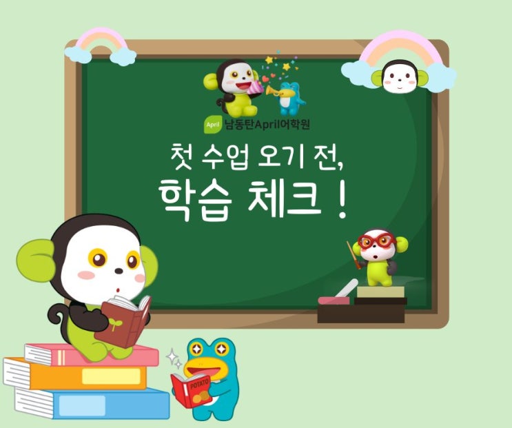 안녕하세요 남동탄 에이프릴어학원입니다. 첫 수업을 앞두고 “미리 준비해야 할 게 있을까요?” 궁금해하시는 학부모님들이 많아 첫 수업 전 꼭 확인해 주셔야 할 체크 리스트를 안내드리려고 합니다. [ 아이들을 위한 체크 리스트 ! ] 1) 온라인 학습 https://learning.chungdahm.com/april 2) 청크북 예습 (seed 레벨 이상) [ 학부모님을 위한 체크 리스트 ! ] 1) 교재 구매 및 수강료 결제 2) 카카오 채널 문의 첫 수업 전 ! ✅ 1. 레벨 및 수업 시간 다시 한 번 확인해주세요 • 아이의 반(Level)과 요일·시간을 확인해 주세요. • 혼동될 경우 언제든지 학원으로 문의 주시면 안내드리겠습니다. ✅ 2. 연필 &....... <img src="https://blogthumb.pstatic.net/MjAyNjAxMjZfMjU4/MDAxNzY5NDI0NzIyMzQw.en2-s6YDgrMyBCpmA8SRa8VgMOQjxnvL_yY_pEuArFgg.aLxFya_peuwc2dBw6ipCCqxpeh3ZZMpVVYUV2BSQJygg.JPEG/%C3%B9_%BC%F6%BE%F7_%BF%C0%B1%E2_%C0%FC.jpg?type=s3" />