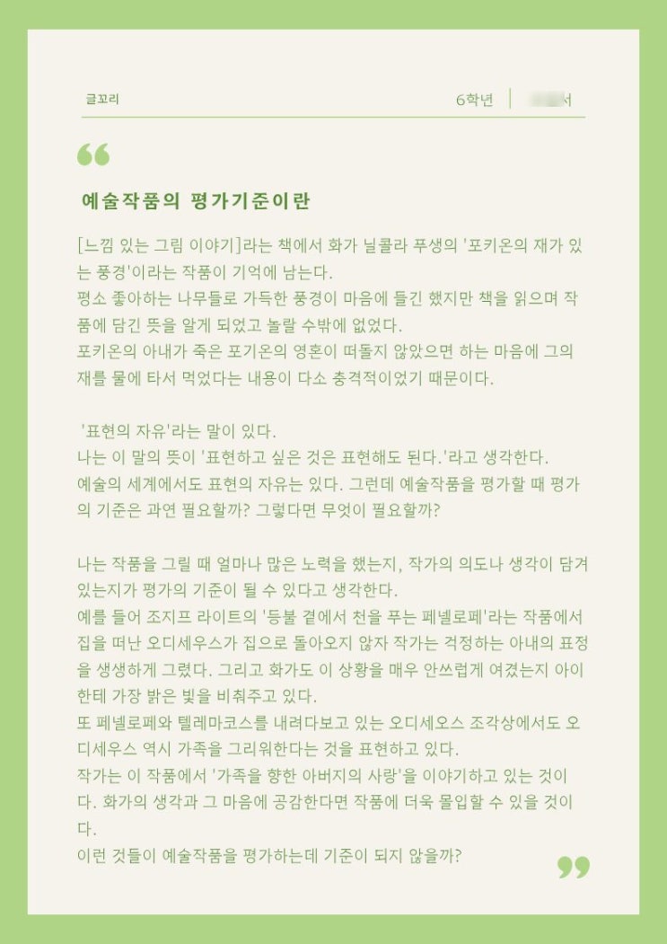 느낌있는 그림 이야기 평소 미술관은 어렵고 거리감이 느껴지는 곳이었으나, 이 책을 통해 그림이 화가의 일기장과 같다며 이야기 나누었습니다. 그림 속에 숨겨진 시대상이나 화가의 의도를 발견해 보기도 했지요. 아는 만큼 보인다는 말처럼, 화가의 삶을 이해하니 그림이 전보다 훨씬 입체적으로 다가왔음을 느끼게 되었습니다. 교육문의 : 031-355-5209 <img src="https://blogthumb.pstatic.net/MjAyNjAyMDRfMjE2/MDAxNzcwMTkwNzgxMDE1.zk0Lqozv2nQhoJXRmOZNkOfmJn0zRPw3flmtyCjsHH0g.zXc0an5_QVvySnlUgvMhfRrWI797JUhaaaCpZFzBJkYg.JPEG/%C1%A6%B8%F1%C0%BB_%C0%D4%B7%C2%C7%D8%C1%D6%BC%BC%BF%E4._%285%29.jpg?type=s3" />