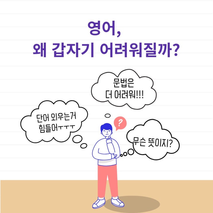영어를 시작할 때는 비교적 잘하던 아이들도 어느 순간 갑자기 벽을 만나는 시기가 있어요. 문장은 길어지고, 단어 수도 많아지고, 학교 시험 범위는 훨씬 복잡해지면서 아이들은 자연스럽게 “나 영어 어려워…”라는 감정을 느끼기 시작하죠. 이런 모습을 보면 부모님들은 “우리 아이만 그런 건가?” “조금 뒤처지는 걸까?” 하는 걱정을 하게 됩니다. 하지만 사실, 이 시기는 모든 아이들이 한 번씩 겪는 자연스러운 변화예요. 중요한 건 그때 어떻게 잡아주느냐에 따라 아이가 영어를 다시 ‘할 만한 것’으로 느낄지, 아니면 점점 부담으로 느낄지가 달라진다는 거예요. 왜 갑자기 어려워질까? 영어가 어려워지는 시점은 대부분 ‘독....... <img src="https://blogthumb.pstatic.net/MjAyNTExMzBfMTE4/MDAxNzY0NTEyMzczNTI2.5hFhWtgnzTkwtoP0aDJUUSongMLLlfXRojDR1ir43iIg.FqvPtO_6LevmN7ZEyYVvN8qrcl0DLUge-U3ZfKDhqMIg.JPEG/%C7%D0%BA%CE%B8%F0%BC%B3%B8%ED%C8%B8%C8%B8_%282%29.jpg?type=s3" />