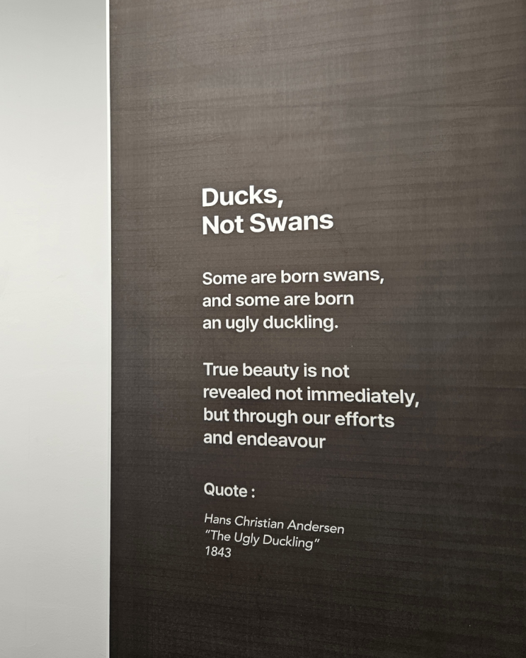 Ducks, not swans. 모두가 백조로 태어나는 것은 아니기에 전시 공간에서 한 문장을 마주했습니다. Ducks, not swans. 어떤 이는 백조로 태어나고, 어떤 이는 미운 오리 새끼로 태어난다. 이 문장을 읽으며 제가 오랜 시간 아이들을 지도하며, 동시에 저 자신을 돌아보며 느껴왔던 생각들이 자연스럽게 겹쳐졌습니다. 모든 아이가 같은 속도로, 같은 모습으로, 같은 방식으로 자라지 않는다는 사실입니다. 모두가 처음부터 잘 할 수는 없습니다. 유독 빠른 아이, 눈에 띄는 아이가 있는 반면 조용하고, 느리고, 표현이 서툰 아이도 분명히 있습니다. 어른의 시선에서는 그 차이가 ‘능력’처럼 보이기도 합니다. 하지만 그건 능력의 차이가 아니....... <img src="https://blogthumb.pstatic.net/MjAyNjAyMDdfMjIx/MDAxNzcwNDY1OTQzNzQx.BFGx0UwLoxN-LeinH5iKzhd-k2vfHYUJZqFT_wd_TpQg.9zhEVOXiDXUu5HFkXG7JdWD9pMLddG0cblOBRwJJ-Vgg.PNG/Blue_and_Yellow_Minimalist_Daily_Motivation_Instagram_Post_%285%29.png?type=s3" />