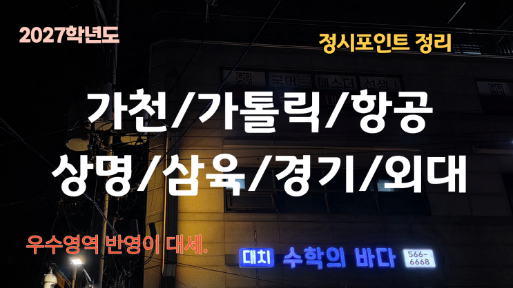 가천/가톨릭/항공/상명/삼육/경기/외대(글) 정시포인트는?/2027학년도