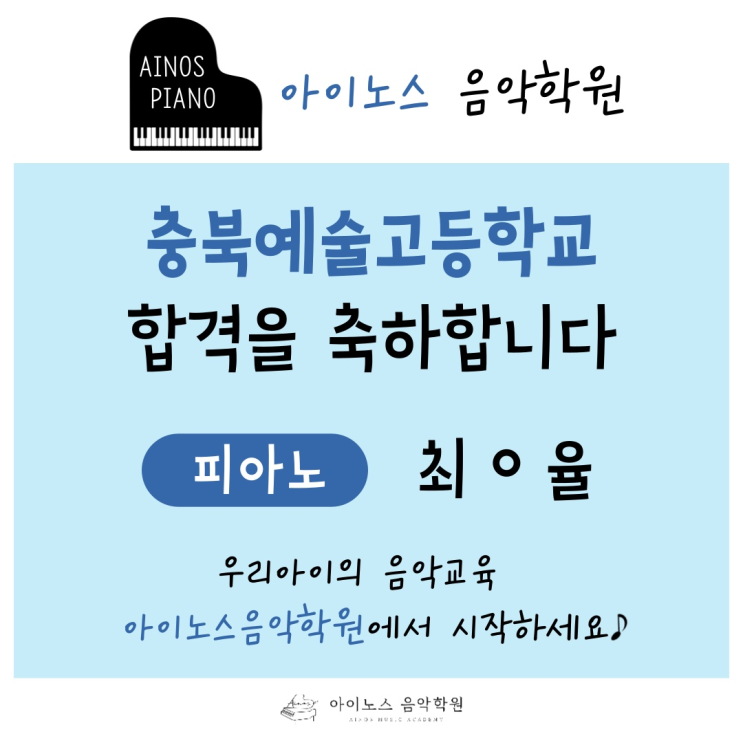 [청주 흥덕구 음악학원] 아이노스음악학원 충북예고 합격 소식!