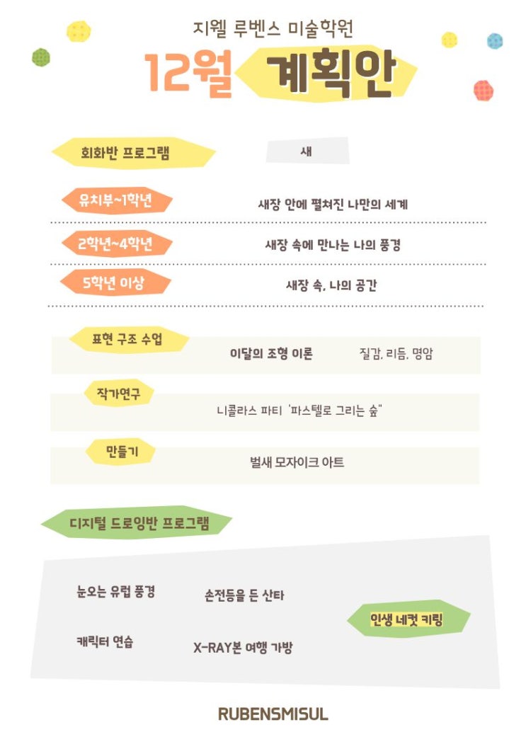 12월 지웰루벤스미술 월 계획입니다.