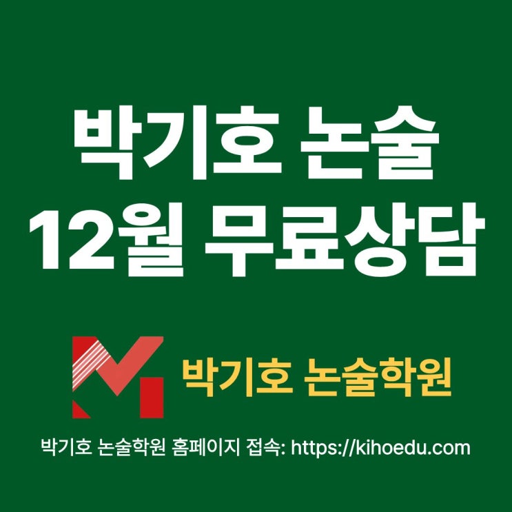 안녕하세요. 박기호 논술학원입니다. 작년 많은 수강생과 학부모님들의 성원에 보답하고자 인문계와 자연계를 가리지 않고 무료 입시 상담을 진행하고자 합니다. “어떤 대학을, 어떻게 써야 할지” 막막한 수험생과 학부모님들도 많으실 거라 생각합니다. 그래서 박기호 논술학원에서는 12월 한 달간 ‘무료 입시 컨설팅’을 진행합니다. 정확한 분석과 현실적인 전략 제안을 통해 학생 개개인에게 꼭 맞는 맞춤형 상담을 제공드립니다. 12월 무료 상담 가능일 운영일자: 12/18, 12/19, 12/20, 12/21(인문), 12/26, 12/27, 12/28 상담시간: 오후 2시 ~ 10시 상담기간 1차(인문) : 12/18(목) ~ 12/21(일) 1차(자연) : 12/18(목) ~ 12/20(토....... <img src="https://blogthumb.pstatic.net/MjAyNTEyMDJfMjM0/MDAxNzY0NjU4ODkyMjMy.LG6HJVn0h94kvITtvyIHD8AHKL1v3gN2dI7AlJtz8qkg.rNaOItq1JyYPG9JB4P9if_Cimf94YHYHU5p5c659ooEg.JPEG/%B9%DA%B1%E2%C8%A3%B3%ED%BC%FA_12%BF%F9_%B9%AB%B7%E1%BB%F3%B4%E3.jpg?type=s3" />