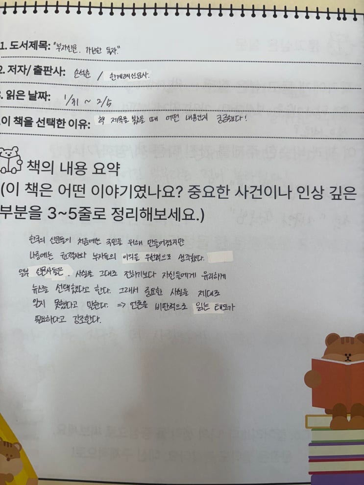 책과 더 가까워진 시간, 중등 독서록반 후기