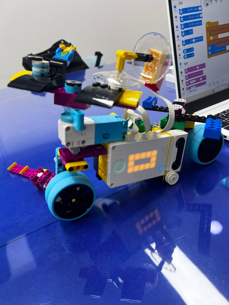 스파이크 프라임(Spike Prime)_ 겨울 학기 2주 차 이번 시간은 '모터 브릭키' 2차시로, 오토바이 모형을 살펴보고 코딩을 통해 오토바이가 부드럽게 움직일 수 있게 만들었습니다. 오토바이 모형을 살펴보면 오토바이 앞뒤로 중형 모터가 각각 1개와 오토바이 좌측에 거리 센서가 1개 사용되었습니다. 오토바이 앞에 있는 중형 모터의 경우, 모터의 회전을 통해 오토바이의 방향을 제어할 수 있으며 오토바이 뒤에 있는 중형 모터는 회전을 통해 오토바이를 전진 혹은 후진할 수 있게 제어하는 역할을 합니다. 센서의 경우, '거리 센서'가 사용되었는데 '거리 센서'는 좌측에 설치되어 있어 오토바이 가까이 있는....... <img src="https://blogthumb.pstatic.net/MjAyNTEyMDlfMSAg/MDAxNzY1MjY5NjcxNjE2.vhbOxrKmxYLYY5AMI-jVywPyCHVInXHi6oRbyY0qhi4g.tc3cGZyr7jm8XDNLzREqvjQJfkqAOV7Hl8FIzRveD3wg.JPEG/C87CE57F-E6BA-4F85-9FE7-B5C3021861E3.jpeg?type=s3" />