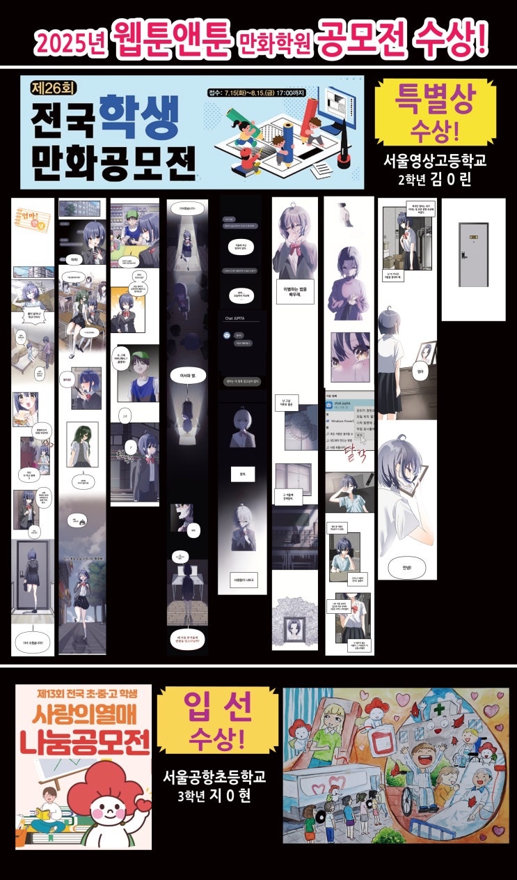 전국학생공모전 특별상 수상!(서울영상고 2년 김O린), 13회 전국 사랑의 열매 나눔공모전(서울공항초등학교 3년 지O현)