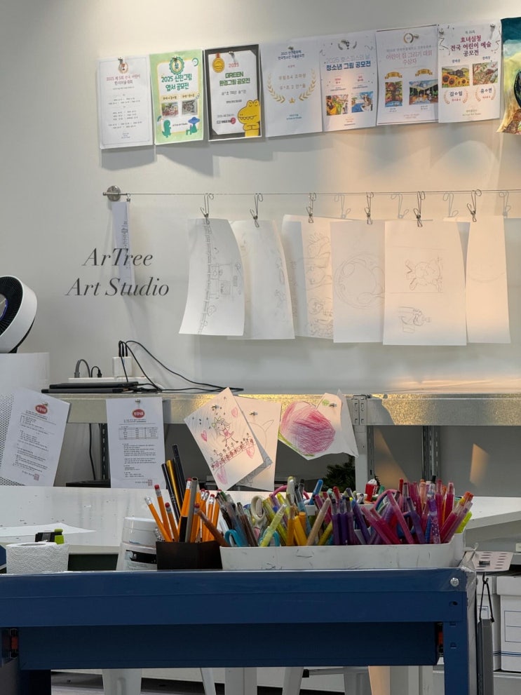 ArTree Art Studio 아트리 미술 따뜻한 햇살과 햇살같은 미소들 ♥ 토요반 아이들과 두쫀쿠 얘기하다가 구하기 어려워서 모두 못먹어 봤다는 얘기 한적있는데 . . 빵집갔더니 있어서 샀다면서 토요반 동생들먹으라고 한가득 사온 **이. 이렇게 사랑스런 중학생아들 이라니 ㅎ 설거지 도와주는거 아니고 물장난중 ㅋ 뒷모습 미녀 ♥ 채색하다 놓친 스케치 다시 하는중 ㅋ 꼼꼼히 하시오 ㅎㅎ 공모전 요강 읽어보는중 ㅎ 상금말고 주제를 자세히 보렴 ㅎ 예쁜 모습들 ♥ 얼른 작업해줘! 완성작이 너무 궁금하니 ㅎㅎ 자기 그림 같이 붙여두는 꼬맹이들 ㅎ 여전한 카피바라 사랑♥ 마지막 사진은 . . . . . . 언니들 그림 구경하는 귀여운 아기랑 동....... <img src="https://blogthumb.pstatic.net/MjAyNjAyMTZfMTUw/MDAxNzcxMjQyMTY5OTQ1.FOkFIil_anICprIBq9wkkeqzQTT_1ccrtM96B4pvFiQg.h7C6SriQhC00E2MuqnooB0B_qiXtC7KsAcZ2MqqhJzMg.JPEG/3EE8FFE9-97E0-4EFB-8444-378905812275.JPG?type=s3" />