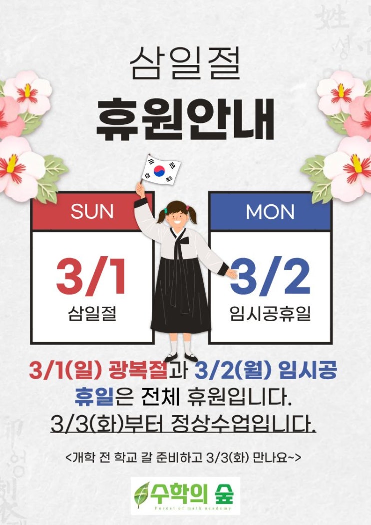 [공지] 수학의숲 삼일절 휴원 안내