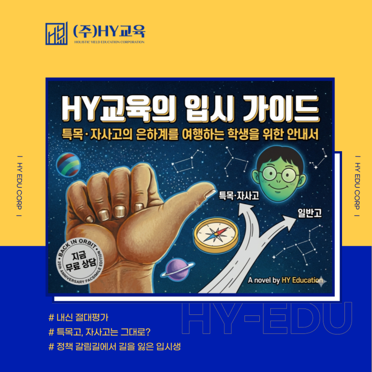 교육 개혁의 두 얼굴, 절대평가 도입과 특목고 존치 사이에서 길을 잃은 수험생을 위한 가이드 안녕하세요! 대한민국 입시의 본질을 데이터로 증명하는 HY교육 입시분석팀입니다. 최근 교육계의 가장 뜨거운 화두는 단연 수능과 내신의 절대평가 전환입니다. 친구를 밟고 올라서야 하는 상대평가에서 벗어나, 학생 개개인의 역량에 집중하자는 취지인데요. 하지만 이 혁신적인 변화 뒤에는 '특목·자사고 존치'라는 복잡한 함수가 숨어 있습니다. 오늘은 이 변화가 우리 아이의 입시에 어떤 영향을 미칠지 핵심만 짚어보겠습니다. 절대평가 도입, 왜 논의되고 있나요? 최근, 교육부와 국가교육위원회는 입시 경쟁 완화를 위해....... <img src="https://blogthumb.pstatic.net/MjAyNjAyMTlfMTAg/MDAxNzcxNTAxOTI5OTUz.x9qBpUrWods5SgSQzJjwvrUAbu706YyUTCxVDGQWId8g.fTY8jCx33TEBD5epSMt7Vnj6qO8z9gjBMs8EEjr5ACkg.PNG/%BD%E6%B3%D7%C0%CF-001.png?type=s3" />