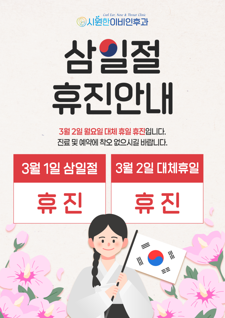 시원한이비인후과 삼일절 · 대체 휴일 휴진 안내