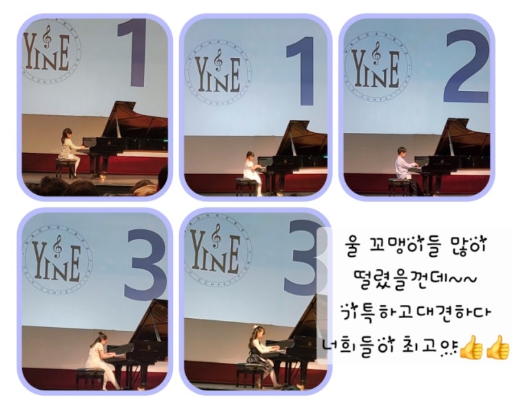 욕심을 내어본 바이엘친구들 바이엘2권3권 치는 친구들 욕심을 내어서 시켜봤답니다. 매일 리셋되는 친구들이지만 이번 콩쿨통해 많은 성장이 있을거라 확신합니다. 셈여림표,빠르기말,16분음표들.... 지켜가며 연주 한다는것으로도 충분히 대상감 입니다. 꼬맹이 친구들이 처음 큰무대에서 연주해보며 긴장을 얼마나 했는지 실수는 작았으나 셈여림을 잊고 연주했답니다 그러나 선생님은 그거마져도 사랑스러워 보이고 눈물이 났답니다. 콩쿨은 시험.실력자랑 대회가 아닙니다. 성장을 위해 필요한 하나의 큰경험 입니다. 즐기면서 콩쿨을 대하는 친구들은 스트레스도 없겠지요^^ 너무 잘했고 최고의 비바체 친구들 이였습니다. 내사랑....... <img src="https://blogthumb.pstatic.net/MjAyNjAzMDNfMTA0/MDAxNzcyNDkwODcwNjg1._lrsInXslhUEDZBXIpc_3f7vBVDzVKNchCJfkKuW2JQg.keqZxZM8l03k7PmnsxRNxScdnGD6ARZKDV2vurbK3bUg.JPEG/900%A3%DFGridArt%A3%DF20260302%A3%DF201114084.jpg?type=s3" />