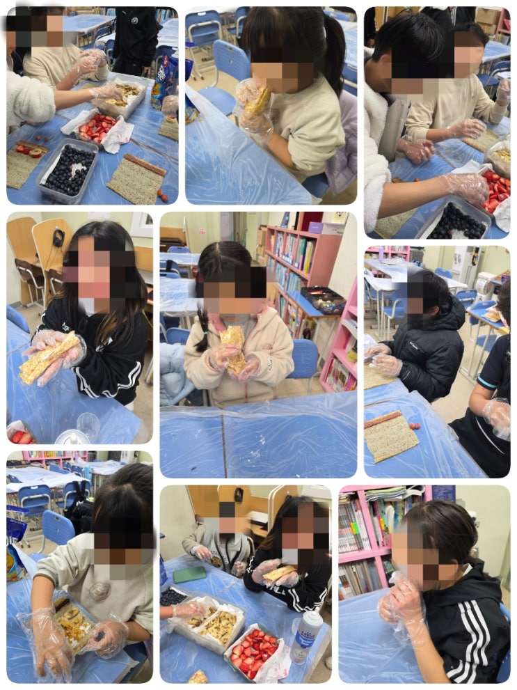 오늘 수업 시간에는 아이들과 함께 특별한 활동으로 크레페 만들기 체험을 진행했습니다. 아이들이 직접 재료를 선택하고 자신만의 간식을 만들어 보는 활동이라 시작 전부터 교실 분위기가 매우 기대감으로 가득했습니다. 오늘 준비된 재료는 딸기, 바나나, 블루베리 같은 신선한 과일과 달콤한 휘핑크림, 그리고 바삭한 식감을 더해 줄 콘푸레이크, 마지막으로 크레페 시트였습니다. 활동을 시작하기 전에 먼저 아이들과 함께 간단한 설명을 진행했습니다. 손 위생을 위해 위생 장갑을 착용하고, 크레페 시트 위에 재료를 올리는 방법과 크레페를 접는 방법을 차근차근 알려주었습니다. 설명이 끝나자 아이들은 각자 자리에서 자신만의 크레페....... <img src="https://blogthumb.pstatic.net/MjAyNjAzMDZfMTY3/MDAxNzcyNzkxMDU2MDU5.z113zLSxsDtM_A2G2s6tKHB3LF60msalfqJamMZEY3Ig.ukS9VhmXaCfASic83KEDi_IPV3UZqamnqigYfnJif7sg.JPEG/900%A3%DF26%A3%AD03%A3%AD06%A3%AD18%A3%AD50%A3%AD19%A3%AD686%A3%DFdeco.jpg?type=s3" />