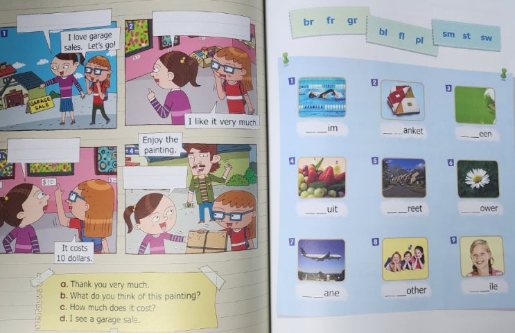 오늘은 스마트 파닉스 4권 두 번째 날입니다!! 이중모음을 진행하고 있는데요 오늘은 br, cr, fr 소리와 다양한 단어들을 빼고 봅니다^^ 아직은 조금 어려운 듯 하나 잘 따라오고 있는 아이들 입니다!! 오늘 과제는 1. Smart, phonics workbook unit.2 2. 단어trace 따라 쓰기(받아쓰기) 즐거운 하루 되세요~~~
