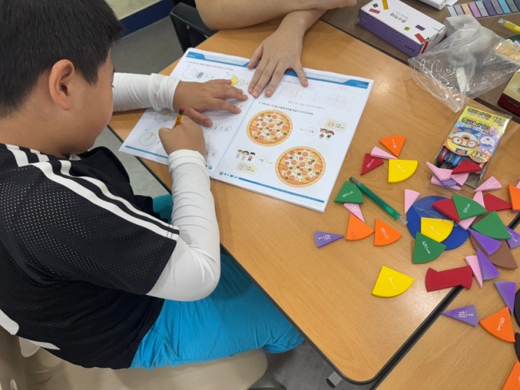 안녕하세요 이지수학입니다. 날씨가 쌀쌀해지는 이 맘 때면, 이지수학은 초등 재원생들을 위한 특강을 진행합니다. 아이들이 어려워하는 [분수]와 [전개도]를 배울 때이기 때문이죠. 이 단원들은 어렵다고 그냥 넘어가기엔 너무도 중요한 단원입니다. 3학년 분수는 단순히 문제를 많이 푼다고 해결되는 단원이 아닙니다. 연산 위주의 4-5학년 과정은 무사히 넘어가더라도 6학년 과정에서는 정확한 개념의 차이가 여실히 드러나게 됩니다. 정규 수업에서 열심히 그리고 꼼꼼하게 개념을 설명하고 지도하고, 특강에서는 보다 직관적인 이해를 돕기 위한 수업이 진행됩니다. 영상으로 내용을 보고, 선생님 설명도 듣고 분수 막대, 원 모형 교구들을....... <img src="https://blogthumb.pstatic.net/MjAyNTExMjNfMjkx/MDAxNzYzOTAwNTkzMjI0.PEOujGX-8CT7tMrdT9PFThtvnGgMgzT-HD040jh4-8Ag.fRovvAKYtJw4plKQWqO64r7HvZwRod5XTRQ7wZi3Nfcg.JPEG/IMG%A3%DF9578.JPG?type=s3" />