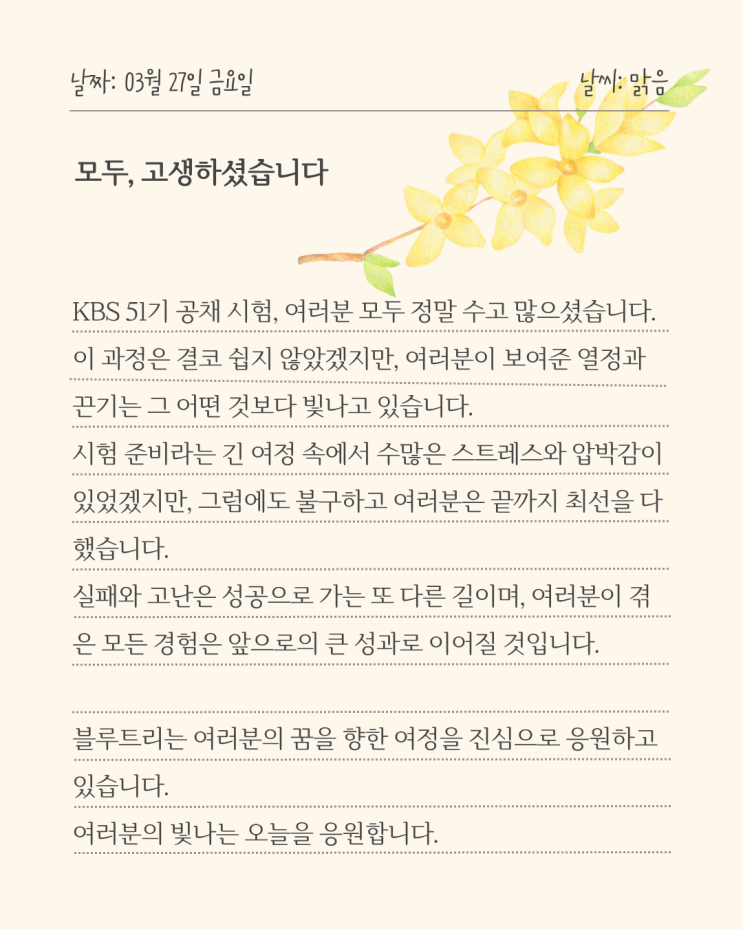 KBS 51기 성우 공채 시험, 모두 고생하셨습니다