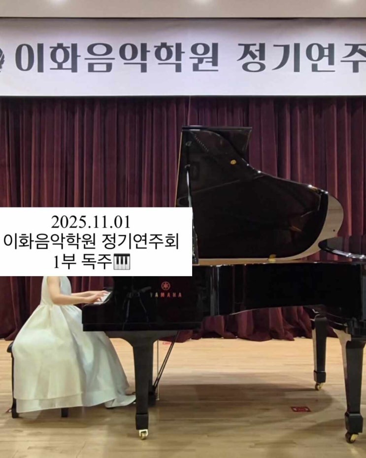 11월 1일에 성공적으로 마친 "2025 이화음악학원 정기연주회" 독주연주를 요약 영상으로 남겨봅니다 긴 연습의 시간들이 하나하나 떠오르며, 그 시간들을 견디고 결국 무대 위에서 반짝반짝 빛나던 아이들이 더욱 대견하게 느껴지는 시간이었습니다 연주회를 할때마다 저희 선생님들은 아이들의 무대를 보며 무엇과도 바꿀수 없는 기쁨과 보람을 느끼게 됩니다 처음 연주회를 하는 친구들은 긴장하고 때론 실수를 하기도 하지만 그또한 잘 이겨내고 연주를 끝까지 완성하는 모습에 대견함을 느끼고, 연주회를 2회차, 3회차 경험한 아이들의 해마다 성장하는 모습을 보며 큰 기쁨과 뿌듯함을 느낀답니다 요약영상이지만 "2025....... <img src="https://phinf.pstatic.net/image.nmv/blog_2025_11_17_919/X2BFTv9Mr8_03.jpg?type=f480x480" />