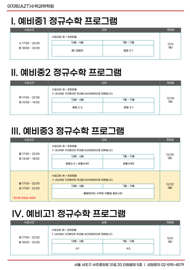 2026 정규수학반 개강 (예비중1~중3)