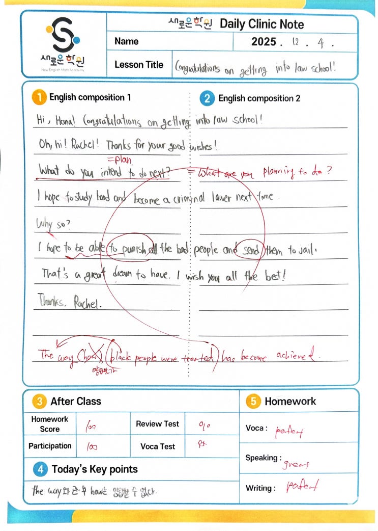 <서초 내곡동 영어학원> 우수 오답노트 영어 2025년 12월5일