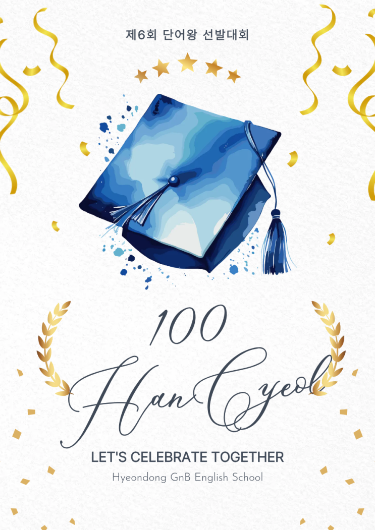 안녕하세요 꾸준함이 이깁니다! 현동지앤비 영어학원장 Bella 입니다 오늘은 2월 26일 목요일 치뤄진 제6회 단어왕 선발대회 결과를 알려드릴려고 해요 현동 지앤비 영어학원에서는 겨울방학에 한번 여름방학에 한번 이렇게 1년에 2번의 단어왕 선발대회를 하는데요 목요일마다 치는 단어 시험을 시험 범위로 정하고 최소 50개에서 최대 600개 범위 내에서 총 100문제를 내고 채점을 한 후 이렇게 상을 준답니다^^ 첫번 째는 91점 이상까지만 상장을 줍니다 두번 째는 상금을 줍니다! 원래는 문화상품권을 줬었는데 어디 쓸데가 없다고 하도 하소연을 하여 현금으로 바꾸었습니다! 세번째로 단어왕에게는 상금과 더불어 부상으로 당근 쿠션을 줍....... <img src="https://blogthumb.pstatic.net/MjAyNjAzMTNfMTY3/MDAxNzczNDA3NTg4MTcx.Yk5SoIdMgVMh0Zv_uiWsJLoT5-4_rt0aHbR6YP4tGnIg.5zraWiqov79fuJF5xWXmHt2YHX18cSu1sqdHRkj6A3Ug.PNG/%B4%DC%BE%EE%BF%D5_1%B5%EE.png?type=s3" />