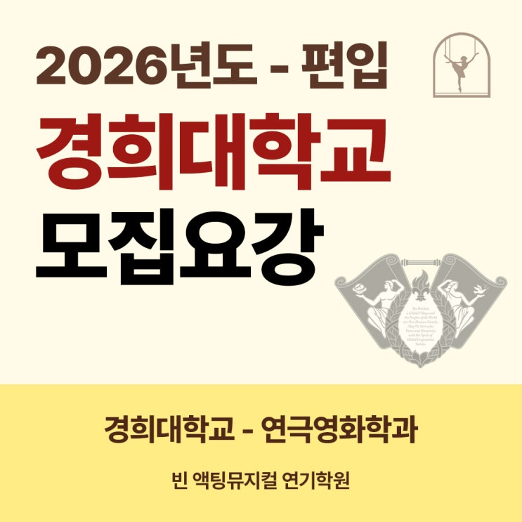 [ 빈 액팅뮤지컬 연기학원 ] 2026년도 [편입] 경희대학교 모집요강 (연극영화학과)