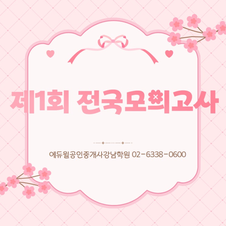 안녕하세요 에듀윌공인중개사역삼학원입니다. 오늘은 전국모의고사 일정 관련하여 안내드리고자 합니다 ^^ 접수를 원하실 경우 학원으로 연락주세요^^ [에듀윌 강남학원] [공인중개사 1회 모의고사 접수 일정 안내] 안녕하세요, 에듀윌 강남학원입니다. 2026년 공인 1회 모의고사 접수 일정 안내 드립니다. □ 시험접수 - 03/23(월) 09:00부터 * 접수에 따라 조기마감될 수있습니다. - 비재원생:3/24(화) 09:00부터 ※ 접수기간 엄수, 선착순마감, 시험당일 접수 불가 □ 시험응시료 - 1차 : 12,000원 / 2차 : 24,000원 / 종합 : 36,000원 □ 접수방법 - 학원 현장 접수 - 접수 당일 아침 온라인 결제페이지 문자 발송 ☏ 전화문의 : 02-6338-060....... <img src="https://blogthumb.pstatic.net/MjAyNjAzMjBfMTU1/MDAxNzczOTc2NzE3MjAx.d4rvXMY9SlF1VoIKplUeh6m7eAAXXpt0mQTQo9xWojcg.nGuSMZj_G4Cyr9u-P99E9krC9tJ2VTqOuK27wvUohngg.JPEG/%C1%A61%C8%B8_%C0%FC%B1%B9_%B8%F0%C0%C7%B0%ED%BB%E7.jpg?type=s3" />
