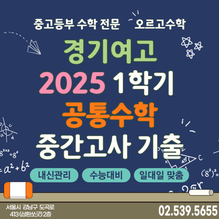 경기여자고등학교 1학년 1학기 중간고사 공통수학 기출문제 손풀이 경기여고 내신대비는 오르고수학 에서 ! 오르고 수학과 함께라면 이렇게 재미있을수학! 오르고수학 입학 및 TEST 안내 ▼▼▼▼▼▼▼▼▼▼▼▼▼▼▼▼ 풀이과정이 제대로 잡혀있지 않은 학생에겐 풀이과정의 연습을! 수학에 대해 자신감이 없고 수학이 두려운 학생에겐 기본부터 심화까지 단계적으로 갈 수 있는 학습을! 문제풀이 양이 적은 학생에겐 조금씩 늘려가는 학습을! 수학에 대한 자신감을 얻을 수 있도록 오르고 수학은 학생들과 함께 노력하겠습니다. <img src="https://blogthumb.pstatic.net/MjAyNjAxMjhfMTMy/MDAxNzY5NTc3NjM3MzI4.g4KvC-KAhyiw40Wc1nSZ3ip8kGFcUww_D87oGB9fIzUg.ElikPo02UqRZ4-Safe-suMueBCPV8sS843kJSBSAxdQg.PNG/%C1%A6%B8%F1%C0%BB_%C0%D4%B7%C2%C7%D8%C1%D6%BC%BC%BF%E4_-001_%2823%29.png?type=s3" />