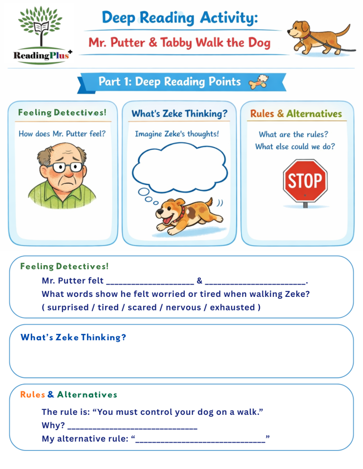 안녕하세요, 리딩플러스 아카데미입니다! 아이들과 함께 영어 원서를 읽다 보면, 화려한 액션은 없어도 읽고 나면 마음이 따뜻해지고 웃음이 나오는 책들을 만나게 됩니다. 오늘 소개해 드릴 책은, 리딩플러스 아이들도 정말 재미있어하는 입니다. (시리즈 #2) 1. 책 소개 : 이번엔 개 산책이다! Newbery Honor상을 받은 작가 Cynthia Rylant의 대표 시리즈예요. 푸터 할아버지와 그의 단짝 고양이 태비의 잔잔하고 유쾌한 일상을 그린 이야기죠. 이번 에피소드에서는 이웃집 Mrs. Teaberry가 발을 다쳐서, 푸터 할아버지와 태비가 그녀의 개 Zeke를 일주일 동안 대신 산책시켜 주기로 해요. 문....... <img src="https://blogthumb.pstatic.net/MjAyNjAzMjVfMTI1/MDAxNzc0NDA2MjI2MDM2.AI7L0x4Nqb0uJ9fsKjqloOaK3wVyDoatQMMtE4_tOs0g.8NvWeyYFZ1Lmlq9hcRlffE8B2598CGAHAnXuIsIaXq0g.PNG/1.png?type=s3" />