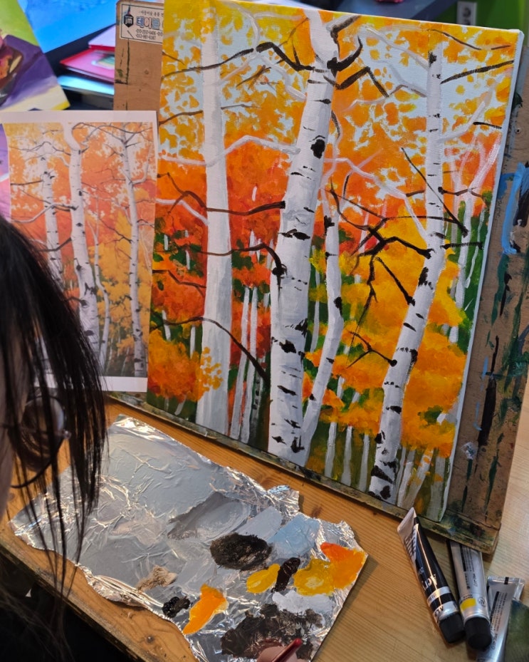 색을 이해하고, 형태를 스스로 구성하는 단계. 초등 고학년 학생들의 아크릴화 작품입니다. 자연 풍경, 정물, 인물까지 관찰 → 색 혼합 → 붓 터치 표현 과정을 차근차근 배우며 단순한 따라 그리기가 아닌 자기만의 색감과 화면 구성을 완성했습니다. 아크릴 특유의 발색과 레이어 표현을 통해 미술적 감각은 물론 집중력과 표현력까지 함께 성장합니다. 기초부터 탄탄하게, 취미를 넘어 실력으로 이어지는 초등 미술 수업. 루브르미술학원에서 아이의 가능성을 발견해보세요 ✨ 초등 고학년 아크릴화 수업 | 미술입시의 시작 미술입시는 갑자기 시작되지 않습니다. 초등 고학년 시기는 관찰력·색채 이해·화면 구성력을 체계적으로 키우는 가장....... <img src="https://blogthumb.pstatic.net/MjAyNTEyMjdfMTgg/MDAxNzY2NzYxMjA0NTk4.vQLcV4yS8Q30d3JZ03Zii4Jj68B1Nyiw6K446crdF7Ag.qoGqG7RO4Mt0biKOtcRV4Bg-FM9XqSen5z1VkWH89kIg.JPEG/900%A3%DF20251211%A3%DF154821.jpg?type=s3" />