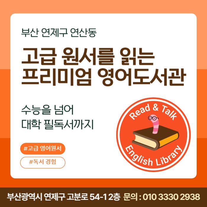 연산동 거제동 양정동 영어도서관 - 수능을 넘어 대학 필독서까지, 고급 원서를 읽는 프리미엄 영어도서관
