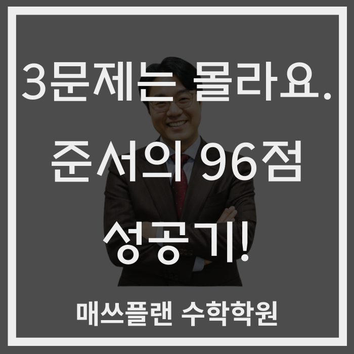 매쓰플랜 옥기 쌤이 궁금하다면 아래 글을 클릭해 보세요. 돈 때문에 시작한 교육! 그리고 25년! 월 수익 1000만 원도 넘게 나오는 개인 과외 선생도 그만둔 썰. 저는 아이들의 꿈과 행복을 위해 가르칩니다! 수업방식과 상담이 필요하다면 아래를 클릭해 주세요^^ https://naver.me/FNGa9L1M 시험 때마다 "3문제는 모르겠어요!"라던 준서의 96점 성공기! "선생님, 이번에도 3문제 정도는 모르겠던데요..." 준서가 시험을 볼 때마다 꼭 하는 말이었습니다. 문제집도 성실하게 풀고, 수업 시간에 집중도 잘하는 아이인데 왜 늘 같은 패턴이 반복될까요? 저는 26년간 수학을 지도하면서 준서 같은 아이들을 꽤....... <img src="https://blogthumb.pstatic.net/MjAyNjAyMjVfMTAw/MDAxNzcyMDIxMDc1NDgy.FUwBcy35prh9CkZXD_BzGi2MZLbPbvSrf2fjP7ewcAIg.2vxZrG2Rfa3Pp4OukIaWjMJ6ENaRtEbAUyrBw0JvAGQg.PNG/%B8%C5%BE%B2%C7%C3%B7%A3-%BC%F6%C7%D0-001_%2812%29.png?type=s3" />
