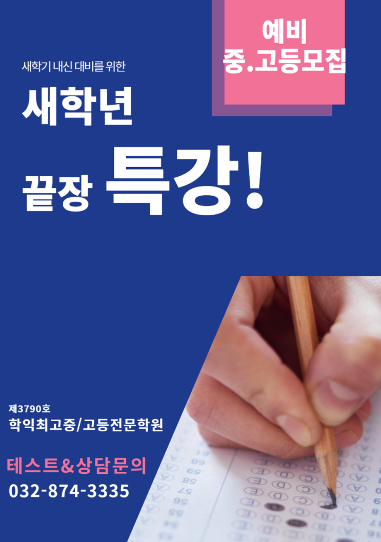 성적이 불안한 친구들 새학기전에 보강수업 추가모집합니다^^ . 제3790호 학익 최고 중/고등전문학원 중등 영/수 20만. 고등 국/영/수 30만 . ✔새학기 시작과 동시에 관리해야하는 내신성적 ✔자기의 맞는 수준별 꾸준한 학습케어 ✔자기 주도 학습관리 . 상담문의 032-874-3335 . #학익최고중고등전문학원 #학익동초등학원 #학익동중등학원 #학익동고등학원 #관교동고등학원 #구월동고등학원 #학익동중등학원 #관교동중등학원 #구월동중등학원 #학익동국어학원 #구월동국어학원 #관교동국어학원 #학익동영어학원 #구월동영어학원 #관교동영어학원 #구월동수학학원 #학익동수학학원 #관교동수학학원 #주안동국어학원 #주안동영어학원 #주안동수....... <img src="https://blogthumb.pstatic.net/MjAyNTEyMTBfNTkg/MDAxNzY1MzI3MjExMDc0.dgBgleeNrDyYXEww8yHgOWWRe4hRD_9cmHRoiC_UmXkg.Zrso_fMxC7dz9gGhDONX6GO_kTaI_PMSDdkG2-TLqiEg.PNG/IMG%A3%DF1778.PNG?type=s3" />