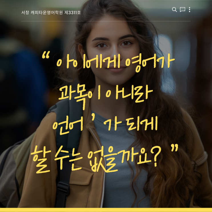 캐피타운은 한 부모님의 질문에서 시작되었습니다 “아이에게 영어가 과목이 아니라 ‘ 언어’가 되게 할 수는 없을까요?” 그 질문에서 시작해, 실제 교육 현장 경험과 수많은 아이들의 성장 과정을 거쳐 지금의 디지털·오프라인 통합 시스템이 만들어졌습니다. 영어를 과목처럼 배우는 게 아니라, 생각하고 소통하는 언어로 익히는 방법. 그 방향을 믿고 함께 걸어가고 있습니다. 왜 영어를 ‘언어’로 배워야 할까요? 아이들은 의미 있는 상황에서 직접 사용한 말을 가장 오래 기억합니다. 그래서 영어를 ‘과목’으로 외우는 것이 아니라, 표현하고 소통하는 언어로 경험하게 하는 것이 중요해요. 말하고, 듣고, 읽고, 쓰는 과정이 하나의 흐....... <img src="https://blogthumb.pstatic.net/MjAyNTExMzBfMjU1/MDAxNzY0NTEyMzc1Njk0.WA1JO-eEUh6b0p9KnkCoiOMJu_qgAEPeyk6qcZolTb8g.W3BubOF7r8f8_r7E1dmNXsOLL6TPWqDDCmJtOxlM-ngg.PNG/%B3%EB%B6%FB%B0%FA_%B0%CB%C1%A4%BB%F6_%B8%F0%B4%F8%C7%CF%B0%ED_%C0%FC%B9%AE%C0%FB%C0%CE_%BA%F1%C1%EE%B4%CF%BD%BA_%BB%E7%C1%F8_%BA%F1%C1%D6%BE%F3_%C8%B0%BF%EB_%C4%AB%B5%E5%B4%BA%BD%BA_%B5%F0%C0%DA%C0%CE_%C5%DB%C7%C3%B8%B4_%C0%CE%BD%BA%C5%B8%B1%D7%B7%A5_%C6%F7%BD%BA%C6%AE%C0%C7_%BB%E7%BA%BB.png?type=s3" />