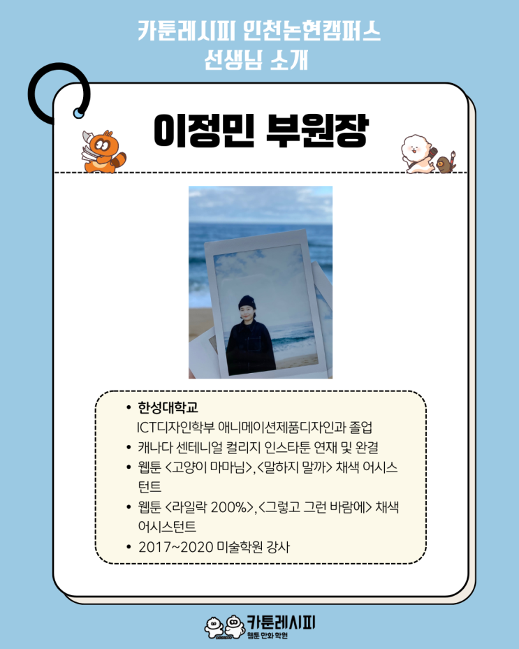 카툰레시피 인천캠퍼스 선생님 소개! <논현만화학원/카툰레시피>